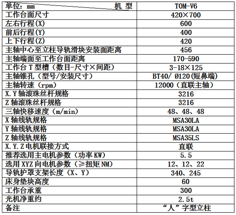 光机技术参数