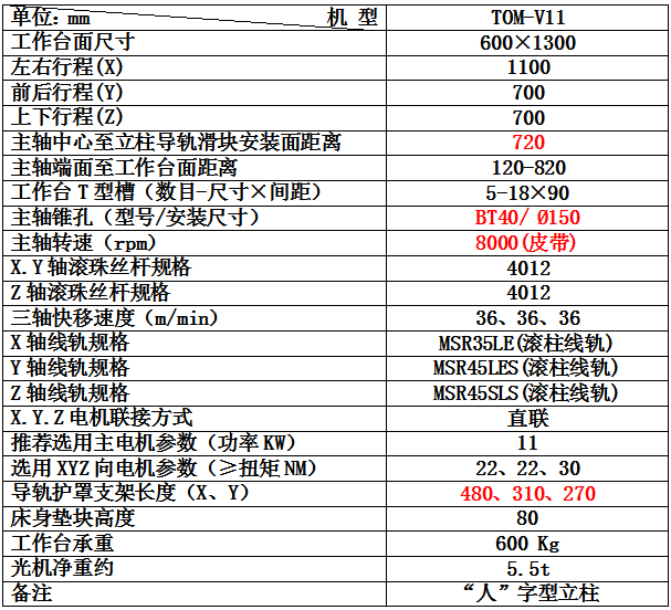光机技术参数