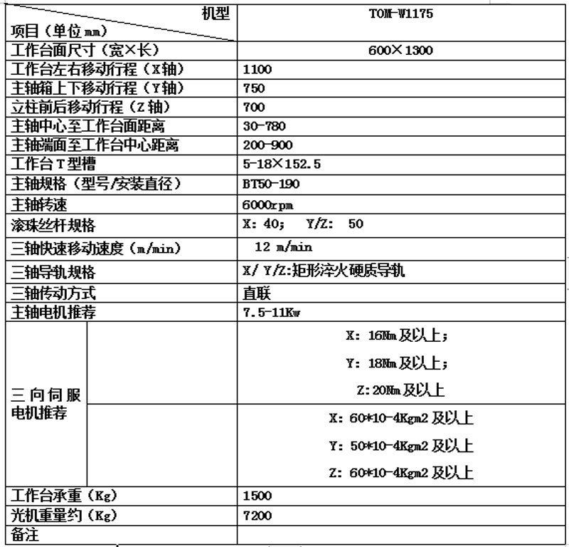 光机技术参数