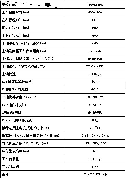 光机技术参数