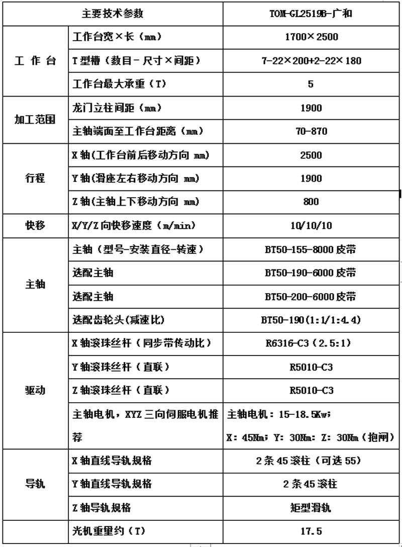 光机技术参数
